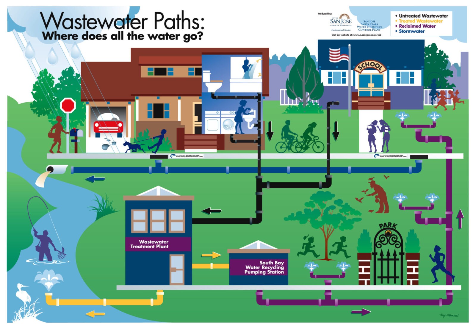 Wastewater Path Poster – San Jose/Santa Clara Water Pollution Control Plant – Where does all the water go?